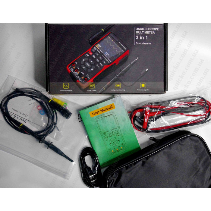 А якщо додати до цього, два входи осцилографа, перемикання режимів однією кнопкою, автоматичне отримання форми сигналу, калібрування тимчасової розгортки, зберігання даних, експорт даних, вибір мови, налаштування часу вимкнення, регульоване підсвічування, порт передачі даних, налаштування вихідного сигналу і функції зберігання, то ми отримуємо: Надійний, точний, простий в есплуатації, високоякісний прилад!